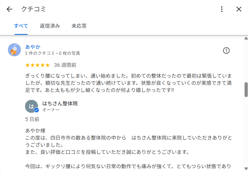 四日市市の20代女性から、Google Mapsに口コミを頂きましたので紹介させていただきます。
